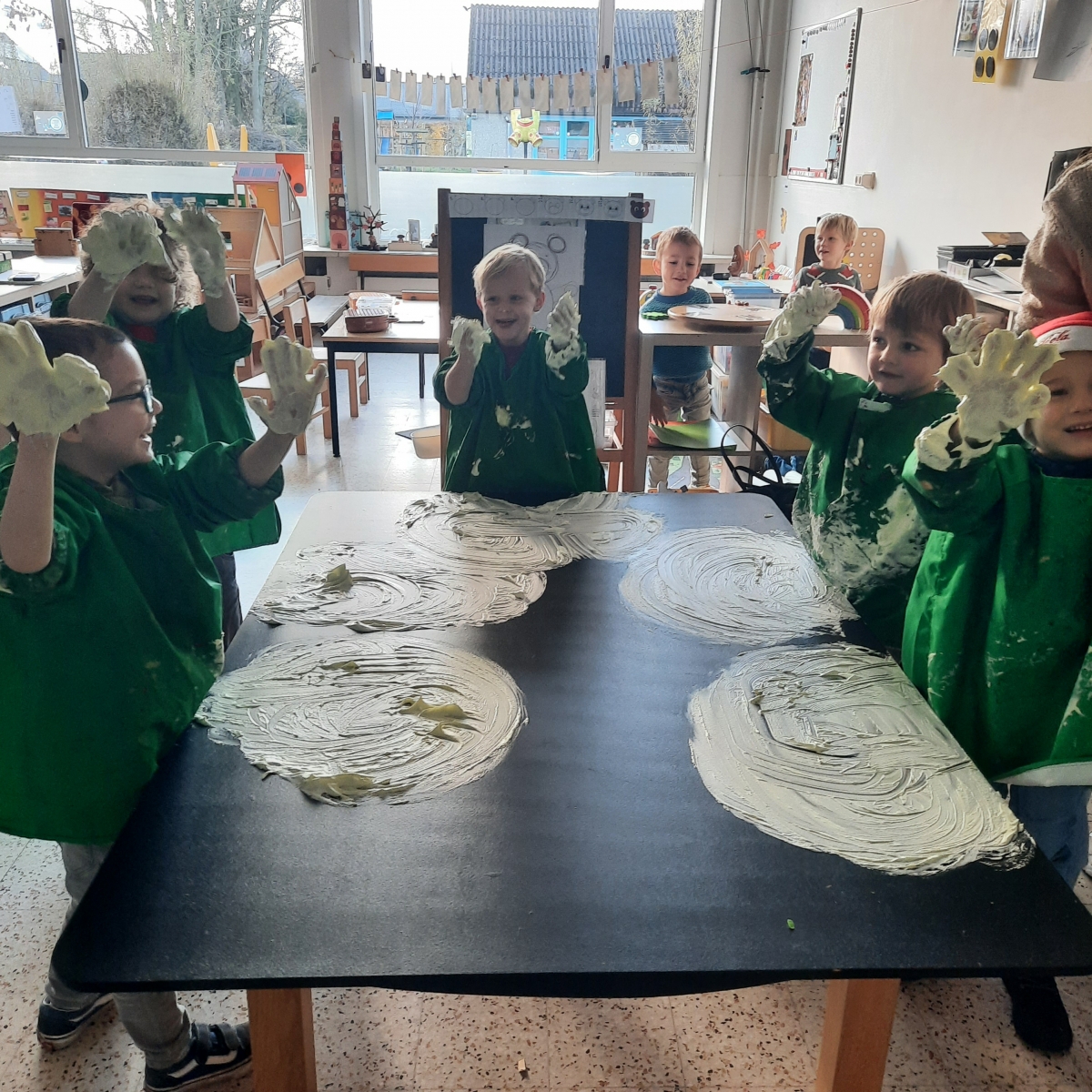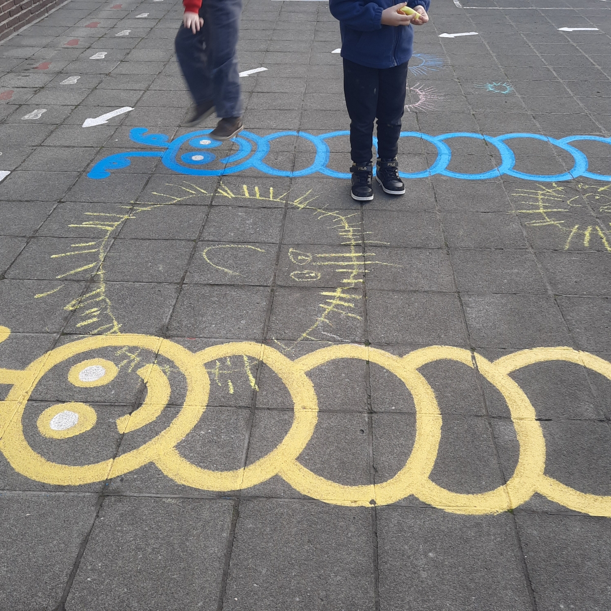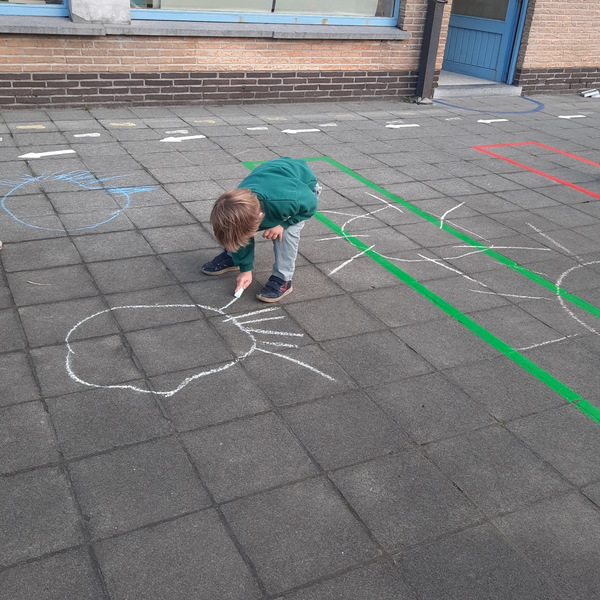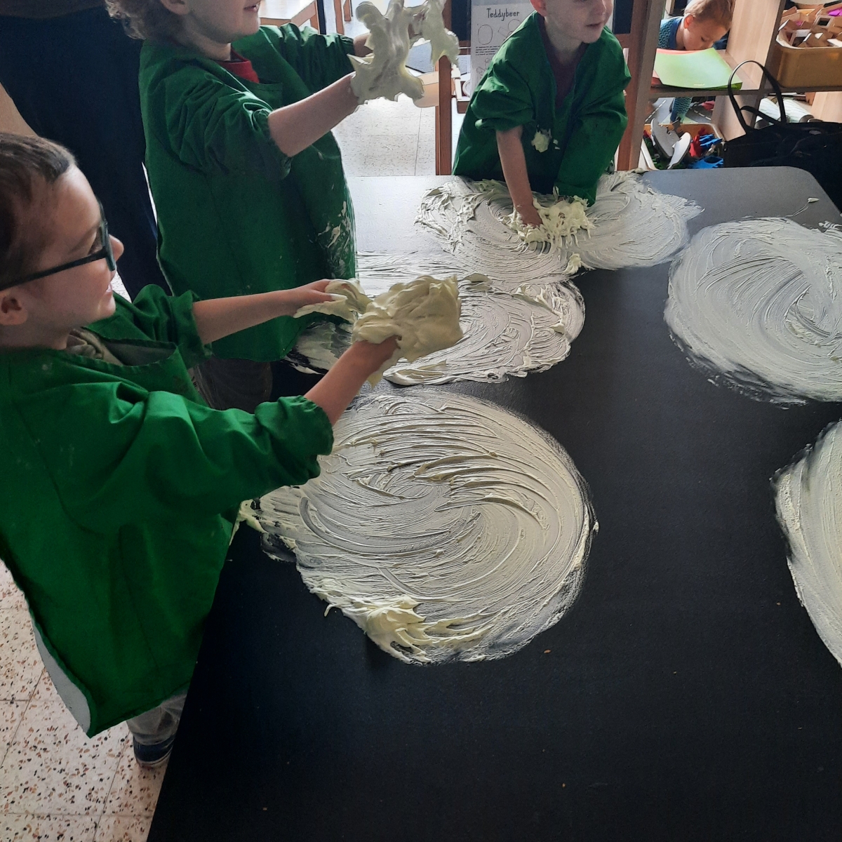 Voorbereidend schrijven: De kleuters gingen creatief aan de slag met schrijfdans op verschillende manieren. Ze tekenden grote cirkels voor de zon ☀️ en rechte lijnen voor de stralen. Ze experimenteerden met: 🎨 Krijt voor grote bewegingen, met grote bewegingen in de lucht, met scheerschuim 🫧! Een fijne mix van beweging, fantasie en schrijfvoorbereiding.💛✨